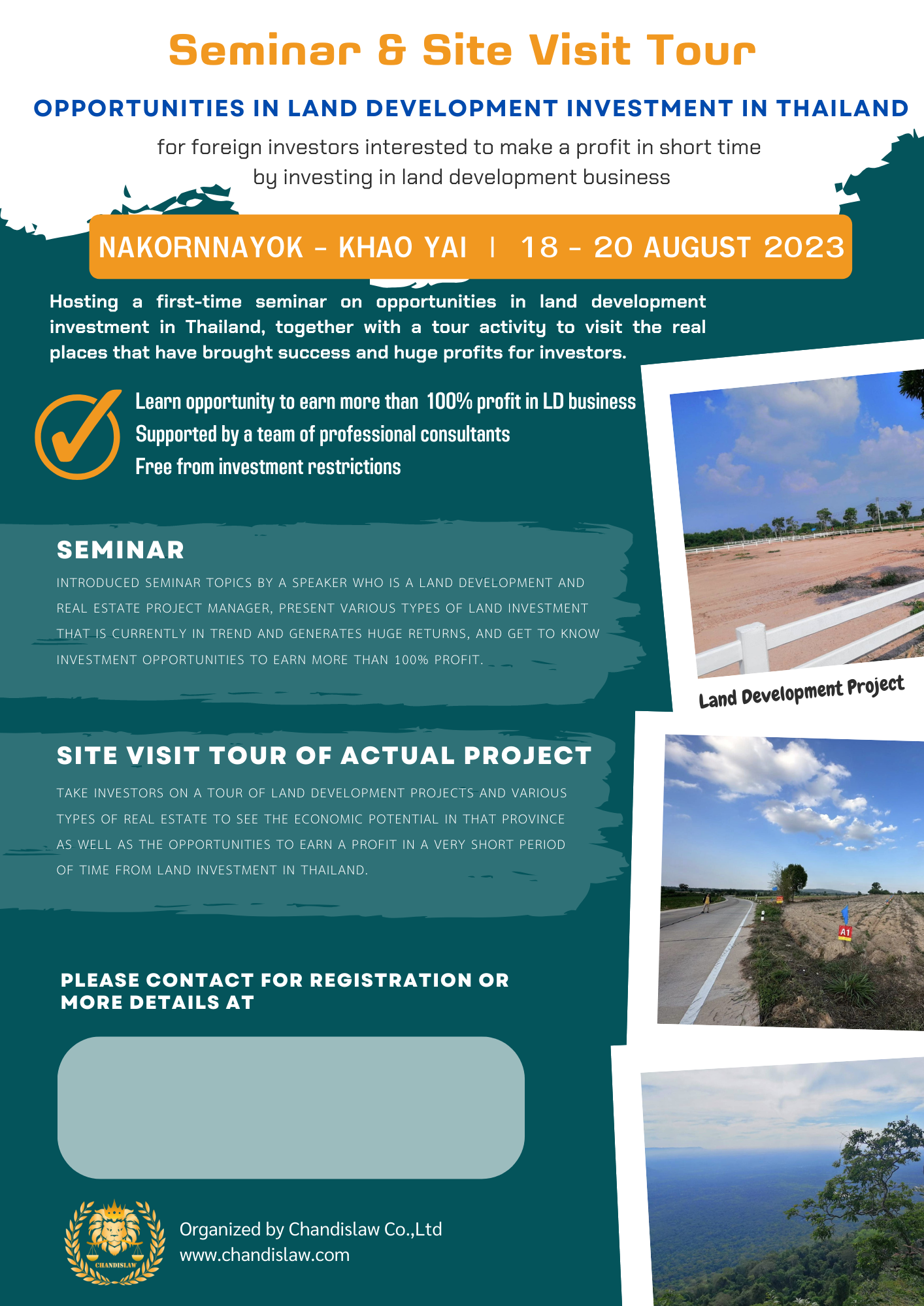 Hosting a first-time seminar on opportunities in land development investment in Thailand, together with a tour activity to visit the real places that have brought success and huge profits for investors.