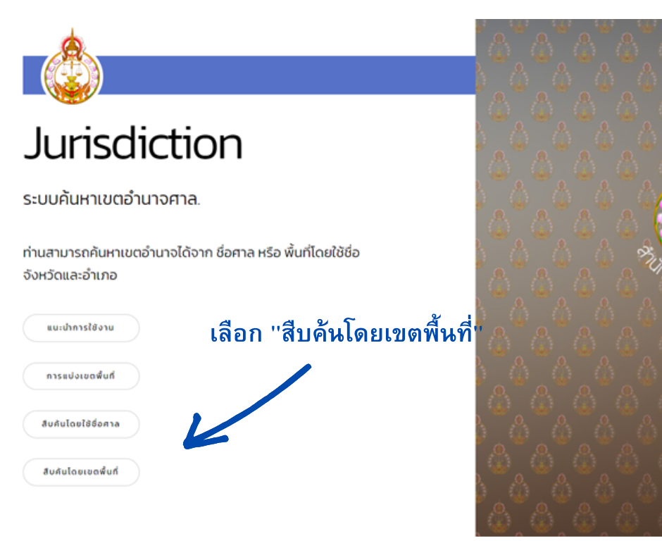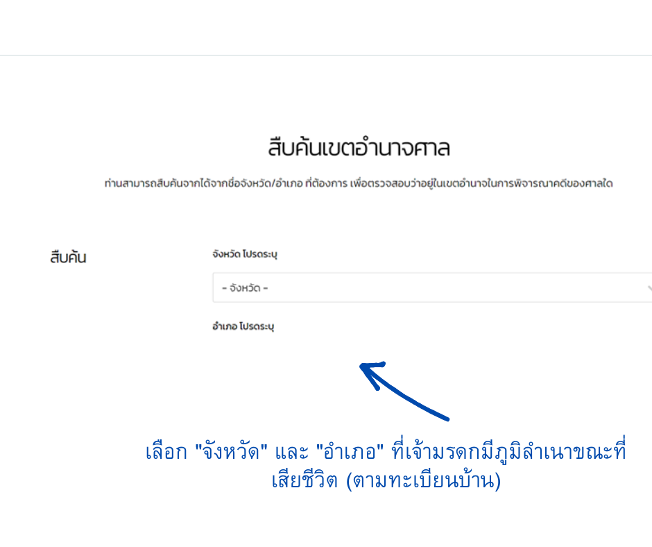 คุณสามารถตรวจสอบรายชื่อศาลได้ที่ https://pubdata.coj.go.th/jurisdiction/ เลือกเมนู "สืบค้นโดยเขตพื้นที่